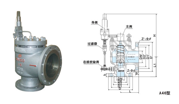 先導式安全閥,安全閥A46型先導式安全閥利用導閥壓力信號打開主閥閥瓣,具有開啟靈敏,回座壓力高,密封性好等特點,廣泛使用于石油、天然氣等設備或系統.作為an全保護裝置。